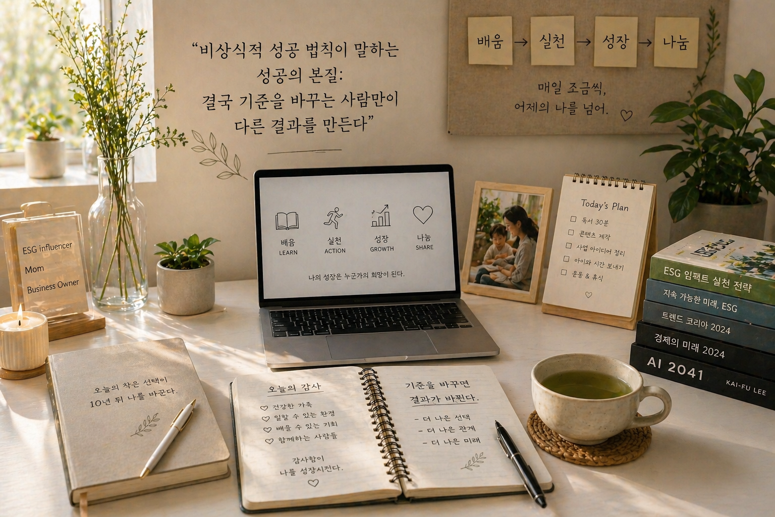 이 책을 읽으며 내가 가장 크게 느낀 것은, 성공은 단순히 결과가 아니라 ‘생각의 방향’에서 시작된다는 점이었다. 예전의 나는 성공을 이야기할 때 결과를 먼저 떠올렸다. 얼마나 벌었는지, 어떤 성과를 냈는지, 얼마나 인정받았는지 같은 것들이다.